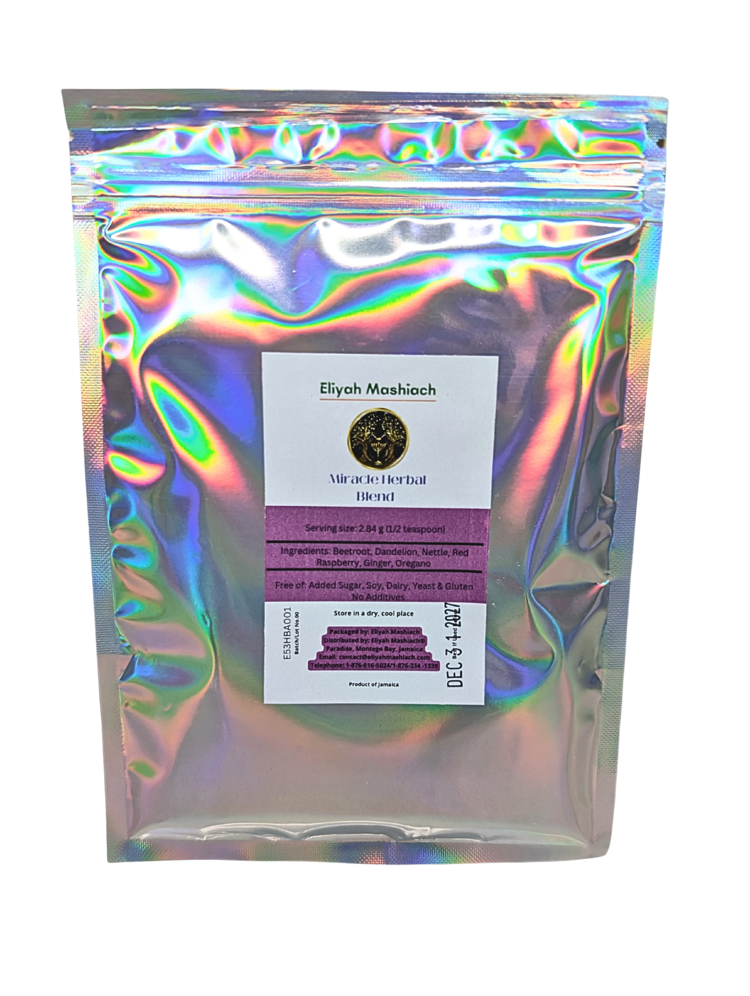 Eliyah Mashiach A powder is made with : Beetroot, Red Raspberry, Nettle, Dandelion , Ginger, Yellow Dock.