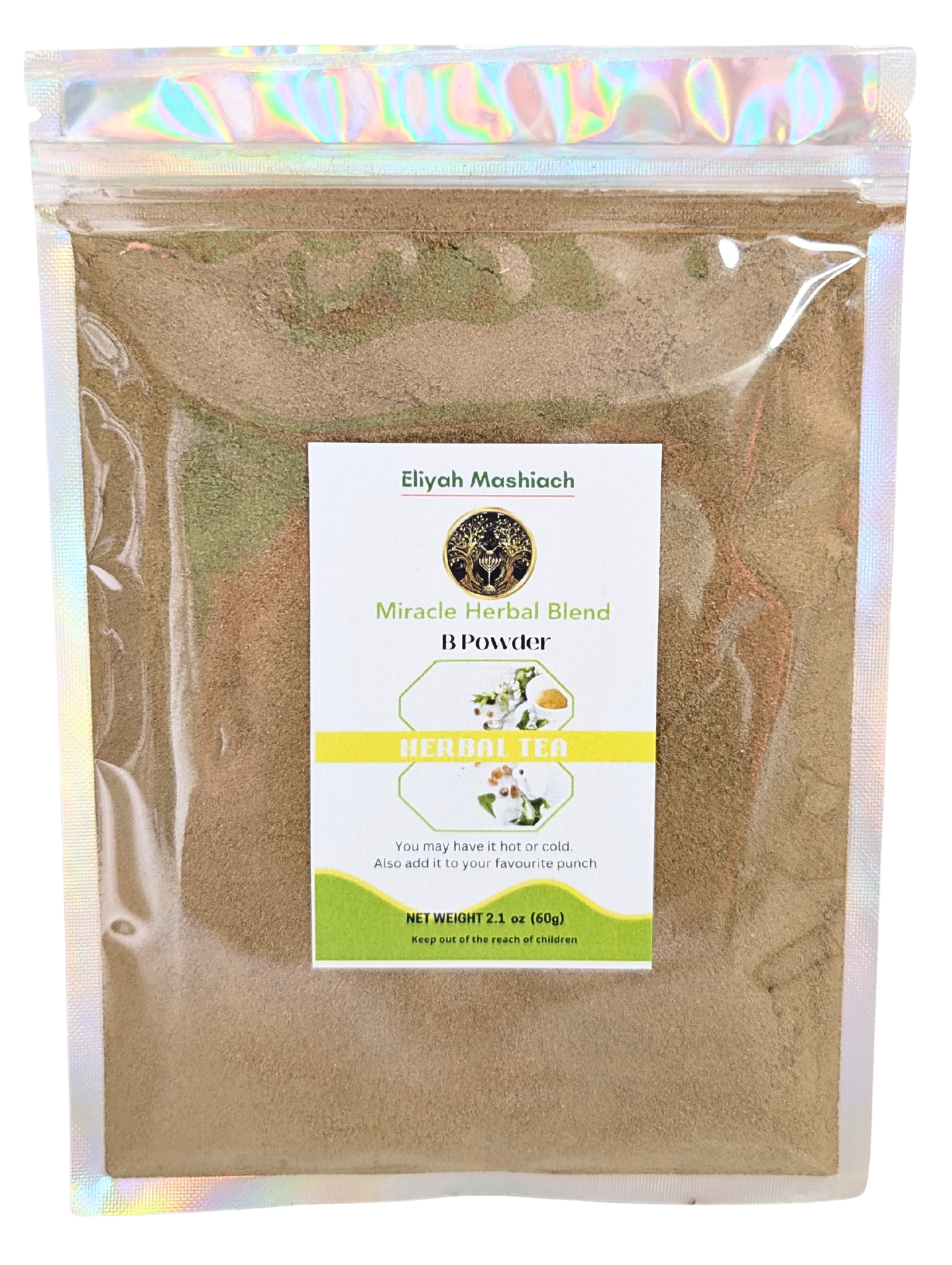 Mix ¼ to 1 teaspoon of the Eliyah Mashiach B-Powder Natural Blend with a cup of warm water, natural juice or smoothies once or twice daily.