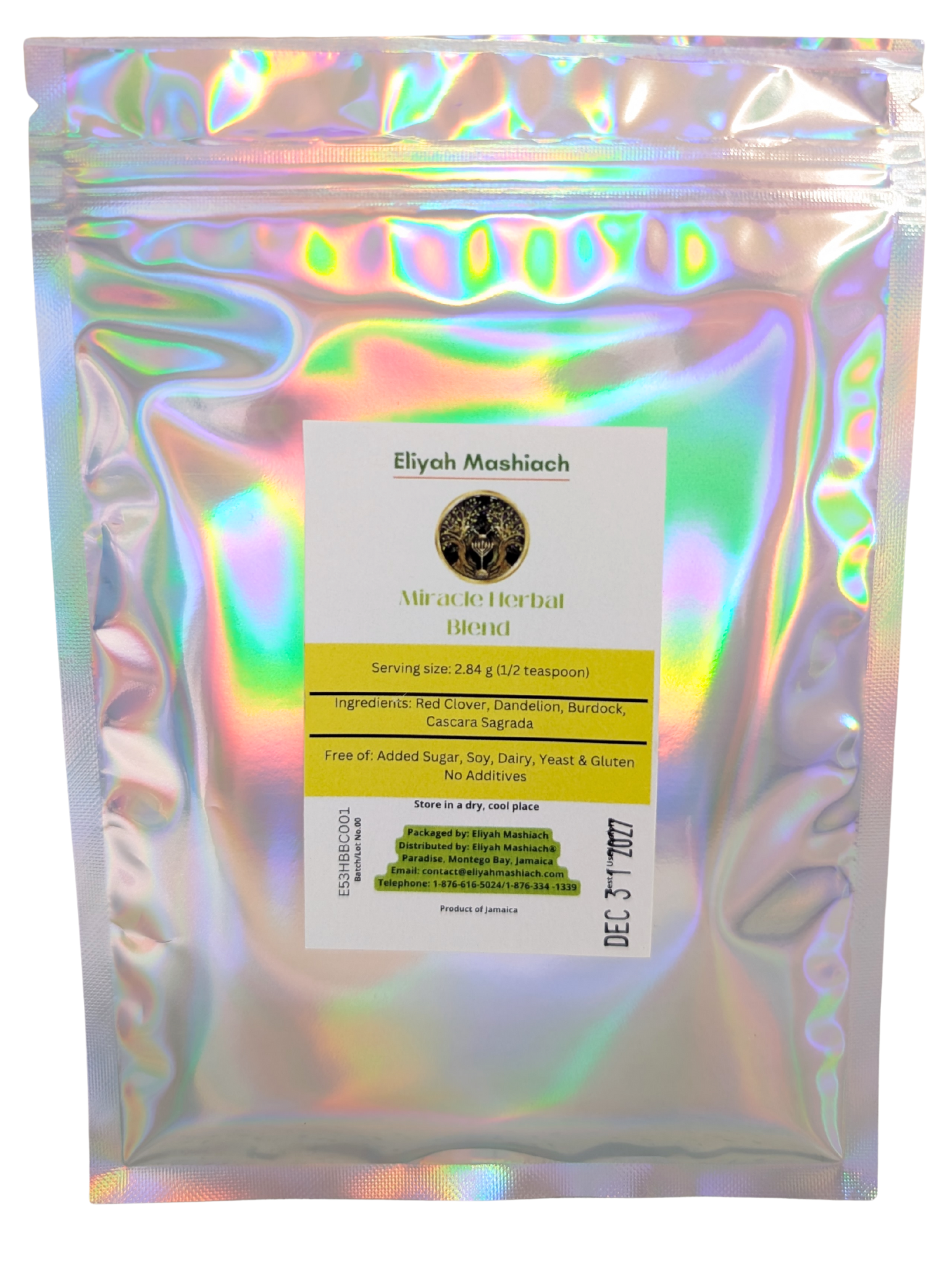 Eliyah Mashiach B-Powder is made with: Red Clover, Dandelion, Burdock, and Cascara Sagrada.