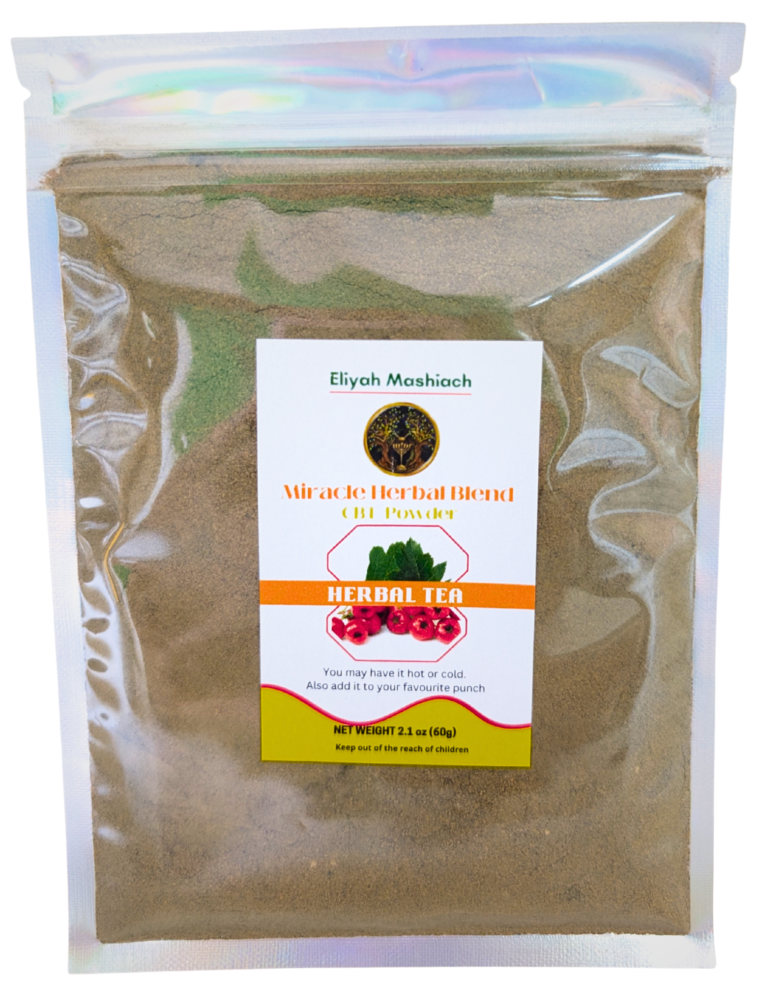Mix ¼ to 1 teaspoon of the Eliyah Mashiach CBT-Powder Natural Blend with a cup of warm water, natural juice or smoothies once or twice daily.