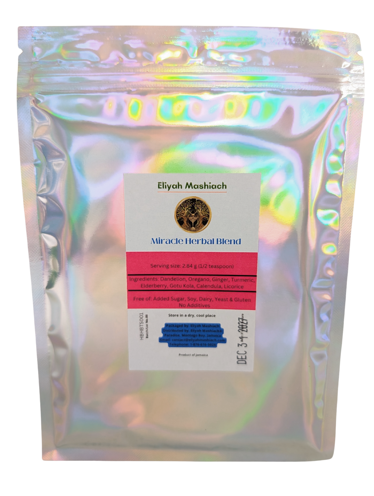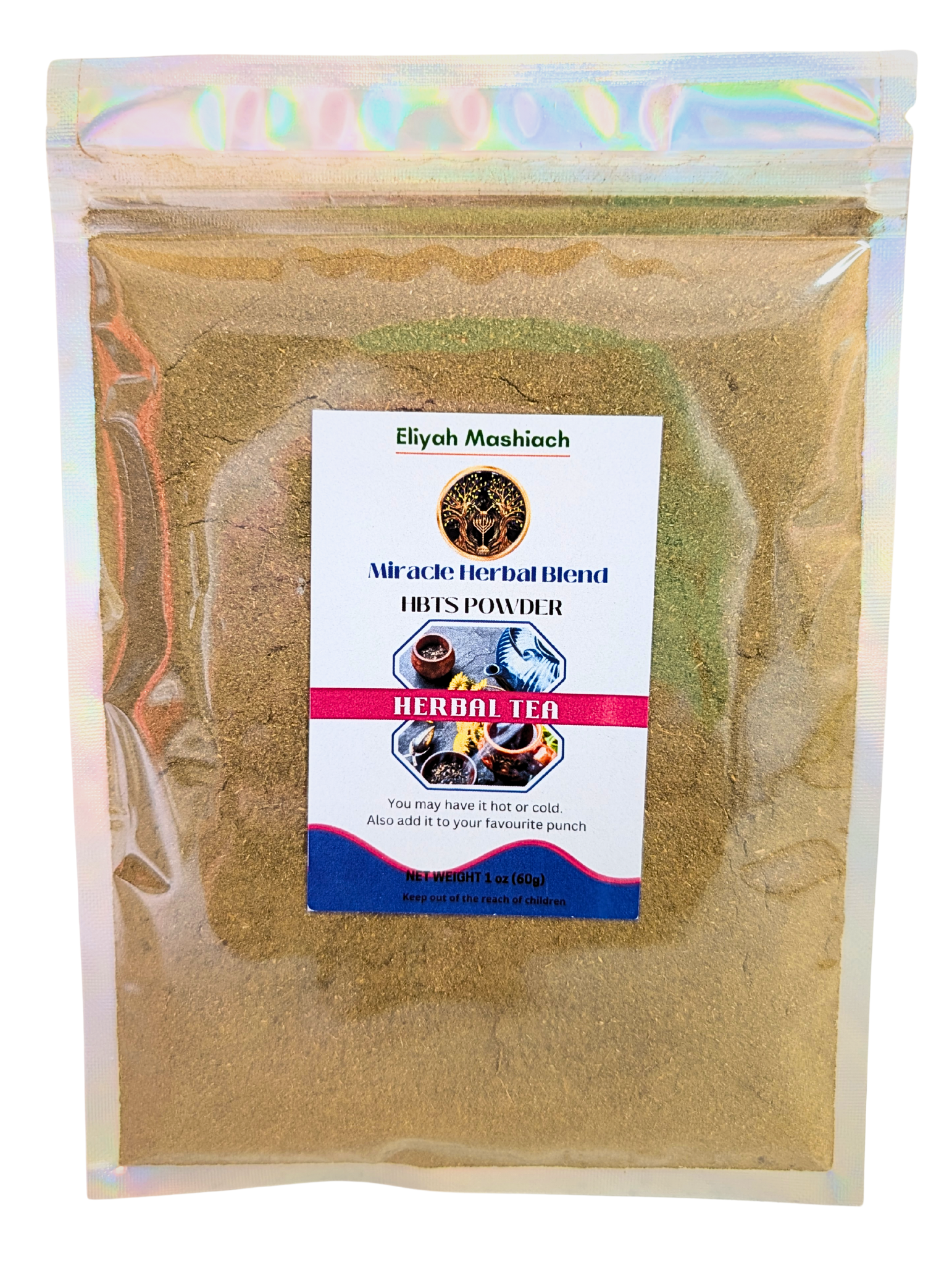 Eliyah Mashiach HBTS-Powder is made with : Dandelion, Oregano,Ginger, Turmeric, Elderberry, Gotu Kola, Calendula, Licorice.