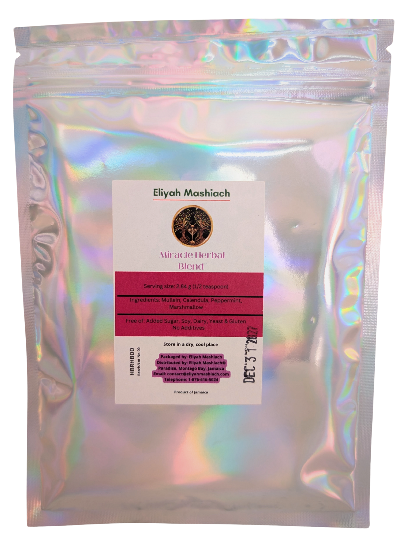 Eliyah Mashiach RHB-Powder is made with : Mullein, Calendula, peppermint and Marshmallow.